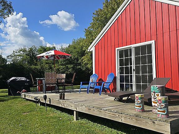 650 sq ft studio summer cottage, full bathroom and kitchen along with Queen sized cabinet Murphy bed. Complete metal wrapped barn siding. 380 sq ft metal sea wall water front. Tri-toon boat with 175 hp engine and Wake Pro Jet ski comes with price as well as all docks and lifts. Call for details or showing