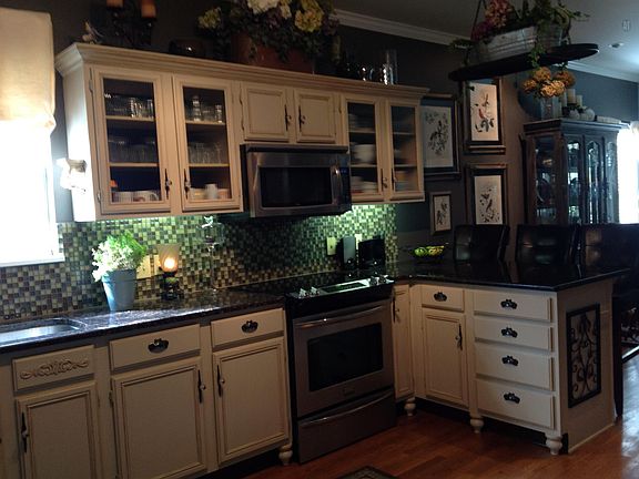 This home has had many interior and exterior upgrades such as new windows & doors, lush landscaping, pergolas and hand crafted shutters. The interior has been upgraded w/ all hardwood wood and tile floors, new kitchen cabinets, granite countertops, glass tile backsplash, stainless steel appliances, wet bar pantry, stacked stone above f/p.