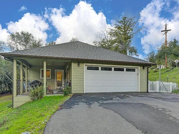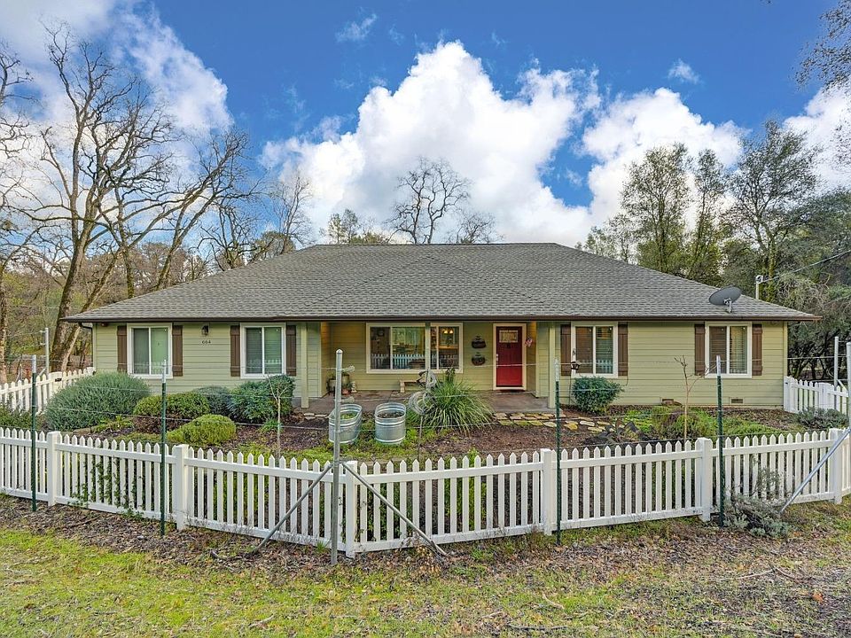 Welcome to this charming single-story home with an open-concept layout built in 2018! The expansive living room, dining area, and kitchen feature vaulted ceilings with exposed beams and large windows, that bathe the space with natural light. The kitchen includes a large center island, complete with a farmhouse sink, an abundance of storage on both sides, a gas range, stainless steel appliances, and soft-close cupboards and drawers. The master suite offers dual closets, a beautiful soaking tub, a quartz double vanity, and a tiled walk-in shower. Two generously sized additional bedrooms and a well-appointed hall bathroom complete the home. Step outside to enjoy your 25'x50' fenced garden, along with a stamped concrete porch and side patio, complete with a propane line ready for your grill. The property features established fig and peach trees, a seasonal creek and has room for expansion. With a two-car garage, guest parking, space for ATVs, RV, and animals, this home is perfect for those seeking peace and privacy of country living with modern convenience. Relax on your patio and watch the deer and wild turkeys roam by. This home offers comfort, style, and a setting you'll cherish for years to come!