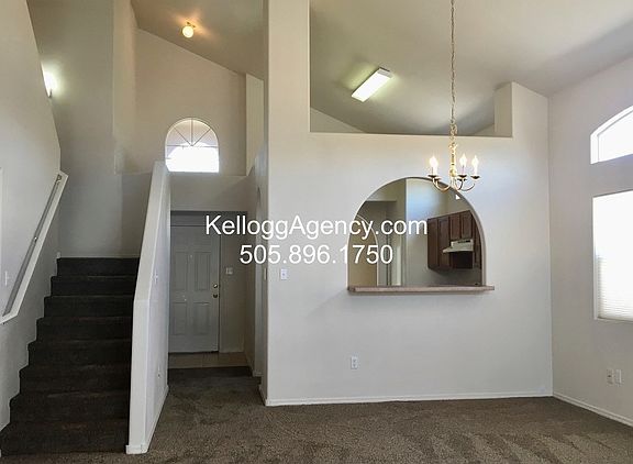 Beautiful 3 bedroom home, plus large loft upstairs. Vaulted ceilings and plant ledges surround entire kitchen. Living area has gas log fireplace, open to kitchen and can be viewed from upstairs loft. Kitchen includes gas stove, side-by-side refrigerator, dishwasher, corner lazy susan plus closet pantry. Master suite downstairs, jetted garden tub, separate walk-in shower, large single vanity sink. Guest powder room, window blinds throughout, new carpet, tile in wet areas, washer hook-up and gas or electric dryer hook-up. 2 Spare bedrooms upstairs, both spacious w/large walk-in closets. Full hall bathroom with single vanity. Two Car Garage with opener. Located in the Northern Meadows Subdivision with walking paths & parks throughout. DIRECTIONS: From Unser & Northern N on Unser L on King R on Willipet L on Camino de los Montoyas R on Soothing Meadows L on Peaceful Meadows Rental Terms: Rent: $1,295, Application Fee: $40, Security Deposit: $1,295, Available Now This property allows self guided viewing without an appointment. Contact for details.