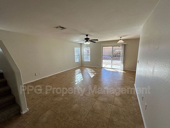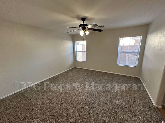 4 bedroom 2 bath home in Windmill Village! Primary bedroom/bath is on the first level and 3 bedrooms, HUGE loft and a bath are on the second level. Home features brand new interior paint and carpet, living room, dining area, ceiling fans in all rooms and covered patio. Property is located close to schools, shopping and highway access. 12 month minimum lease. Pets ok with approval and an additional deposit but no cats please! The security deposit is 1.5 times the rent.. The application fee is $55 per adult. PPG Property Management 15411 W Waddell Rd, Suite 106, Surprise, Arizona, 85379 Amenities: