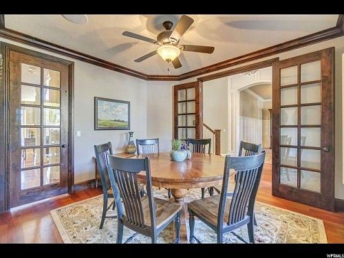 AMAZING HOME. VIEWS throughout the home. GOURMET kitchen with SS VIKING appliances. Double ovens in BOTH main and down kitchens. MAIN FLOOR master. GUEST SUITE off main floor. Main and upstairs LAUNDRY. Basement is BRIGHT and walks out to HUGE patio, yard, and PLAY AREA. Upper floor has large LOFT area with a deck and VIEWS of the ENTIRE valley. Home THEATER area with risers. PLANTATION shutters. Garage is oversized in every way. Amazing deck off main floor. Within MINUTES of airport and SLC downtown. You could NOT COME CLOSE to building this home at this price. MUST SEE.. Call for your personal showing of this well thought out and beautiful home.