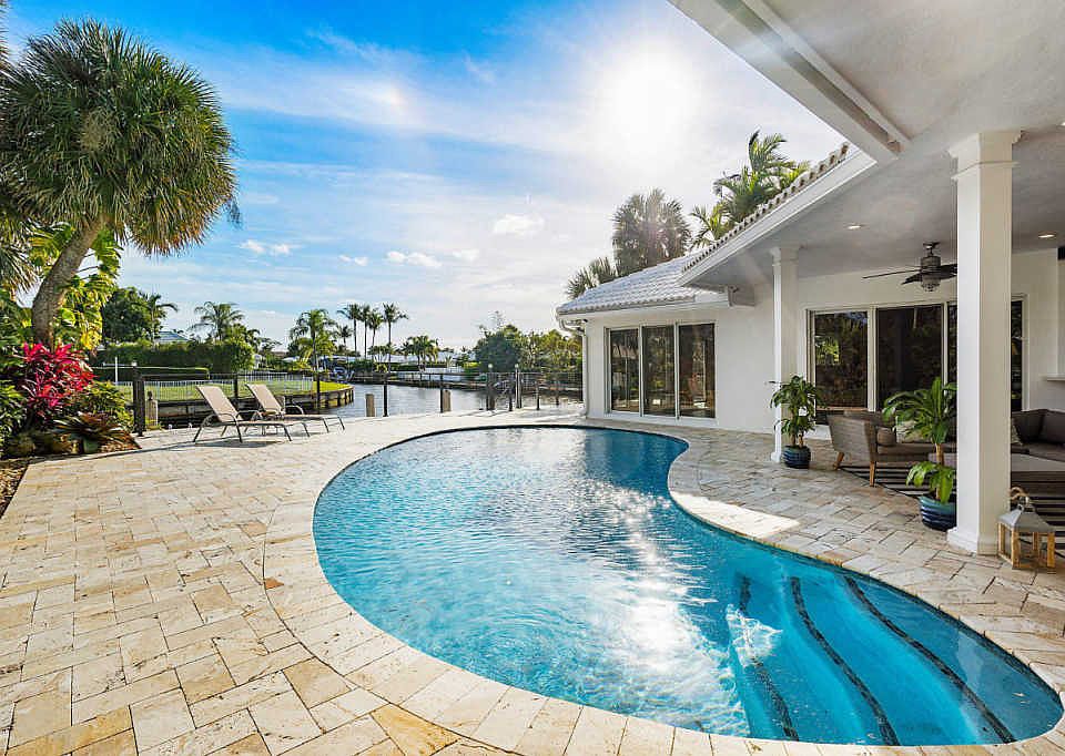 BRING YOUR BOAT! This delightful waterfront home with ocean access in Camino Gardens features a newer seawall, 30ft boat dock with electric, water and a double jetski dock. You will enjoy tranquil water views from almost every room. Relax by the deep blue sparkling pool and enjoy entertaining on the grand open air patio with built-in summer kitchen. Inside the home you will find living spaces filled with natural light and luxurious modern light fixtures. Display your favorite bottles of wine in the large built-in wine cooler. The modern kitchen features white quartz countertops, stainless steel appliances and rich cabinetry. This fabulous home has impact windows, a newer roof and is located on a quiet street in one of the most desirable neighborhoods in east Boca.