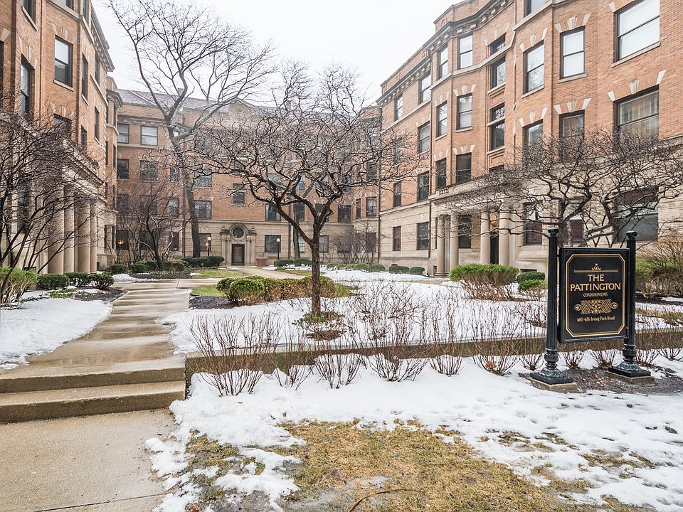 View our 3D Virtual Tour & Floor Plan! Here's an opportunity to own a home/condo at the historic Pattington (One of Chicago's most elegant pre-war buildings & recipient of the Driehaus Preservation Award.) This high first floor 3-bedroom/1.5-bath home features all the vintage charm one expects and within one block of the Lake, jogging & bike paths and a quick walk to the Red Line. The living, gallery & dining rooms are generous sizes with over sized windows, original quarter sawn oak hardwood floors with a walnut stain, high ceilings w/dental molding and mill work. The dining room features beamed ceilings with french doors that lead to your own outdoor balcony. The kitchen offers the original butler's pantry with newly laid plank flooring, white appliances and a walk-in pantry. There's a brand new Bosch washer/dryer that is approved by the building and just requires the necessary installation. The third bedroom (9x9), formally, the maid's quarters is off the kitchen with an ensuite half bath with a shower = European design/style. The other two bedrooms are large with over sized windows too. The master bath is pristine with subway wall tile and newer floor tile. There are only two units per floor. The Pattington is situated on three acres of spacious, manicured grounds with a private park. On-site garage parking options available, no wait. You also have a huge storage room. Monthly assessments include your heat, water, gas, cable and internet. Your only utility bill is the electric. Very pet friendly and 2 dogs are allowed, no weight limit.