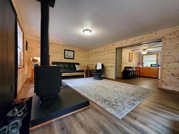 Clean and refreshing, 3 bedroom 1 bathroom home with updated log siding, knotty pine t&g interior, woodstove, and new flooring throughout, "tucked away", private setting on a mostly wooded 7.5+/- acre parcel.