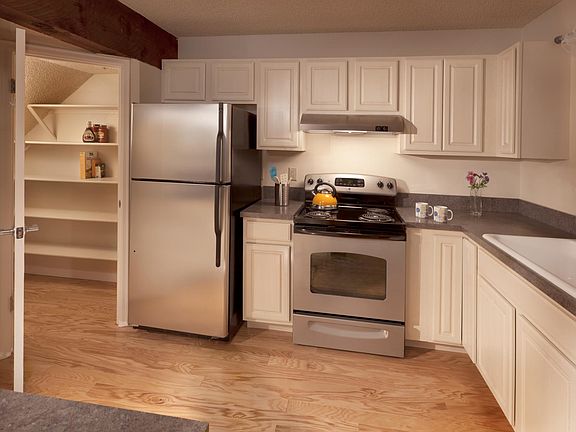 #679, Available 12/10/2018 Two bedroom/ two bath town-home, 1084 sq.ft. *Prime Location* This beautiful town-home is completely updated, quiet location on the corner with a south facing patio and a wood burning fireplace.Washer and dryer hookups in unit or there is a laundry facility on site. Wood floor in the kitchen, living room and dining room, carpet in bedrooms. 6-15 months
