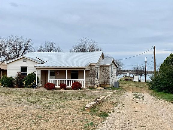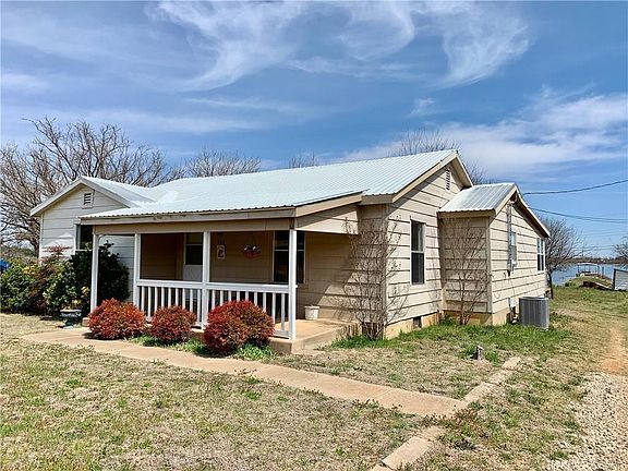 Fully furnished waterfront home on Hubbard Creek Lake! Features two bedrooms, two bathrooms with nice size living room that leads to dining area and kitchen. Second living area with lake views! Spacious kitchen is located between the two living areas with double ovens, electric cook top located in island with breakfast bar, refrigerator and pantry. Great floor plan for entertaining and can sleep 8+. Large covered dock with storage area and wood deck for fishing! Area around boat dock has been dredged. Double carport. Shop with cement floor and electricity. Windows were replaced 3 years ago. Metal roof. All electric. Seller leaving all appliances including washer and dryer!