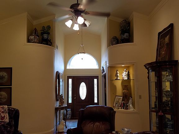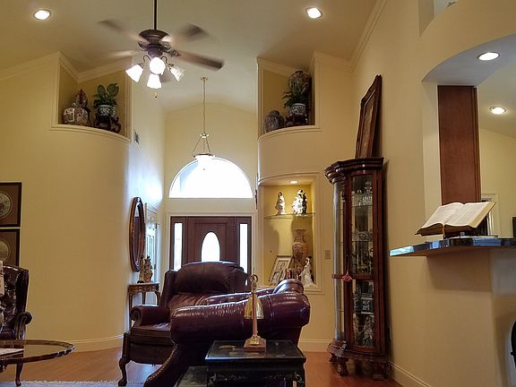Completely custom home. Well planned out and very well cared for. Loaded with extra trims accent features. Soaring ceilings, rope molding and trims, wall niches in the living area with rounded walls. Accent curved ceiling cove over the breakfast bar. Must SEE. Split bedroom plan, with nicely sized second and third rooms divided by a naturally lit full bathroom. Master bedroom offers great lighting arrangement for the bedtime reader, beautiful custom master bath suite with oversized walk-in shower and large soaking tub and double vanity. Well placed gas log fireplace with built-in book cases.