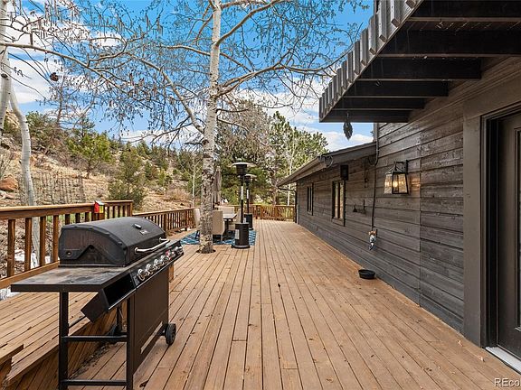 Exquisite Renovated Mountain Retreat in Desirable Evergreen! Nestled on 2 acres of prime mountain land, this stunning Evergreen property offers the perfect balance of luxury, privacy, and community. Every inch of this home has been thoughtfully renovated in the last year and a half—featuring a brand-new kitchen with high-end chef appliances, elegant new bathrooms, all-new flooring, a spacious new deck, and extensive fire mitigation for peace of mind. The home showcases exceptional design and craftsmanship throughout. Soaring ceilings and large windows fill the space with natural light, while providing breathtaking mountain views. The open-concept kitchen is a chef's dream, complete with an eat-in island, pot filler (perfect for fur baby water bowls!), and stylish finishes including a coffee bar with a beverage fridge and separate sink. The luxurious primary suite includes a custom walk-in closet and a spa-like 5-piece bath. On the main level, you’ll also find a convenient powder room for guests. Downstairs, a lock-off basement with a private entrance offers incredible flexibility—featuring a cozy space heater with a stone surround and tons of natural light. Enjoy an amazing sense of community with wonderful neighbors and an HOA that hosts lively neighborhood events at The Barn. This home is not just a place to live—it’s a lifestyle. Don’t miss this rare opportunity to own a beautifully updated home in one of Evergreen’s most sought-after locations. Welcome home!