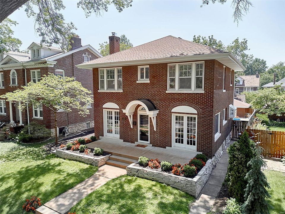 Don't miss this Stunning & Updated all Brick Home, located on a Gorgeous tree-lined street, in the highly desirable Ames Place neighborhood. This home boasts plenty of natural lighting with multiple original & gorgeous French Doors in the front of the home. AND there is a Beautiful INGROUND POOL in the back w/ brand new liner plus yard w/ lots of greenspace! Also features all Freshly painted interior & Gorgeous hardwood floors on both levels. You'll love the Office Bonus Room & Open Floor Plan. Living Room w/ beautiful fireplace opens to the Dining Room. The Light & Bright Kitchen features abundant Custom Cabinets, hard surface tops and new subway tile backsplash. Brand new Half Bath just added on Main Floor. Upper level Full Bath is beautifully updated w/ NEW Dual Vanities, beautiful shower tile work & fixtures. Large Primary Bed w/ separate closets. 2 car brick garage w/ new door. Fantastic location close to Wash U, the Loop, Shaw Park, Clayton & great access to highways. What a Gem!