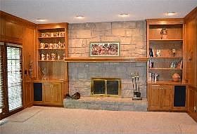 What a setting! Shady, tranquil & private with lots of mature trees & lush greenspace to enjoy! Huge paver patio & even a private deck located just off of the Master Suite retreat! The large, inviting Great Room also provides easy outdoor access & is highlighted by a grand stone fireplace that is flanked with built-ins! The adjoining tiled Kitchen is also sure to please, complete with upgraded silestone counter tops, a handy center island, sleek black appliances, large double door pantry with handy rotating shelving & even a built-in planning desk! Start your day off right in the adjoining windowed Breakfast Area, or spill right out onto the enormous paver patio with your morning coffee! The home also features a lovely Formal Dining Room for those extra special gatherings! There is even a nearby wet bar that is perfect for entertaining! Laundry facilities are also perfectly placed on the main level, as well as a bonus Den featuring built-in bookshelves! All of the Bedrooms are located upstairs & all have lots of closet space! The vaulted Master Suite boasts a walk-in closet, desirable dual sinks, jetted tub, & direct access to a private deck! Beautiful glass-covered pocket doors also open to a separate Sitting Room complete with a cozy brick fireplace! The home also offers a handy central vacuum system & and a spacious walkout lower level that offers great storage space or even additional future living space if so desired! Lots to offer in a quiet cul-de-sac lot! For more information, please call 913-661-2303.