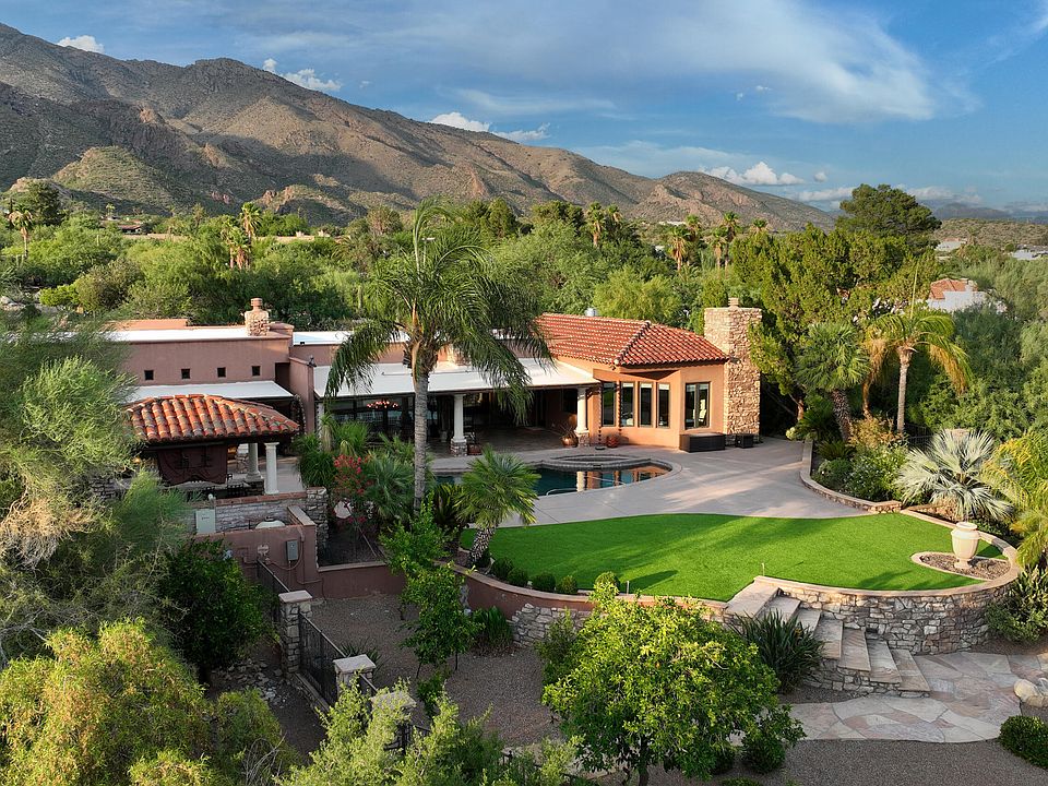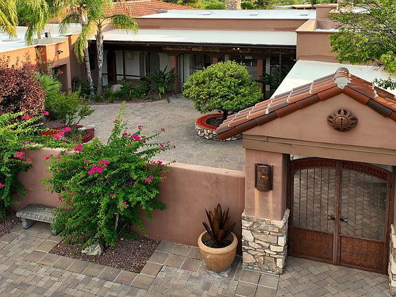 Welcome to 6640 N Los Leones Drive, a masterpiece of luxury living in the prestigious Skyline Country Club Estates. This stunning 4,804 sq. ft. estate, set on a sprawling 1.08-acre lot, features 4 bedrooms and 4 bathrooms and has been meticulously remodeled to blend its timeless Old World Charm with modern elegance. Set in a gated community, this home offers unparalleled city, mountain, and golf course views, making it a true showcase of refined living.As you approach the grand entrance, you'll be greeted by a captivating cactus water fountain with natural rock features, large boulders with a cascading waterfall, and subtle up-lighting for an enchanting night effect. The custom iron gate and wrought iron front door open to a courtyard adorned with pavers, lighting, Property Video: https://youtu.be/JAyZ5EsPlwY?feature=shared