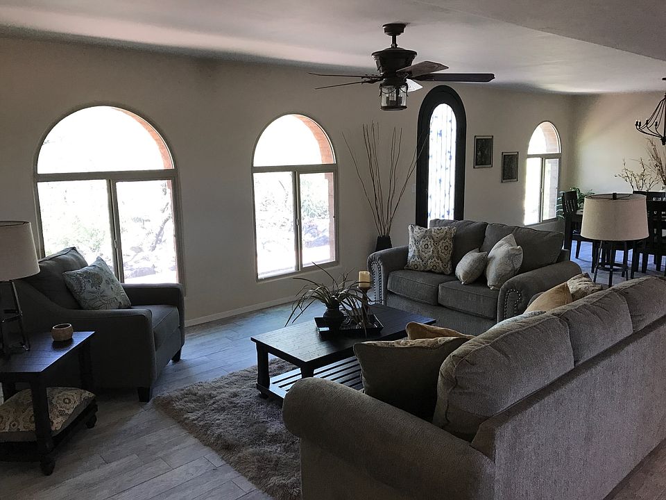 Fantastic redesign with breath taking views and unbelievable privacy. Split bedroom with spacious great room offering kitchen with new cabinets, granite counters, appliances and fixtures. Master suite that offers new bathroom and ring soaking tub, seperate sinks, fantastic closet, and slider to rear deck, 3 secondary bedrooms are roomy and laundry is terrific. Nearly everything is new, including roof. The North facing deck has just been completed and you will surely enjoy the close-up Catalina Mountain View!!