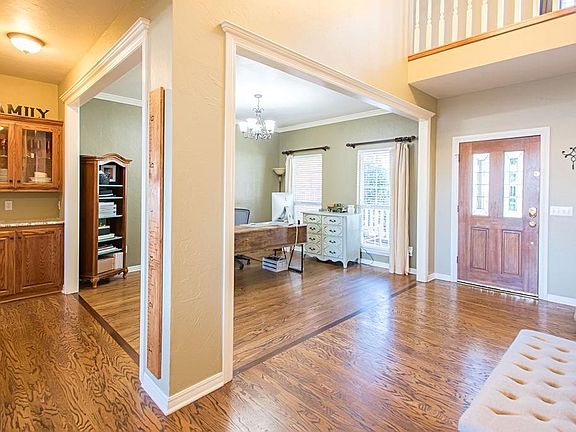 Reduced on 1/7/20, Open Sunday 1/12/20! The expansive covered porch & mature landscape will immediately impress. Inside, the airy 2 story foyer leads to 2 flex living/dining areas that can morph to any need. The kitchen has extensive storage options with custom cabinet pull out shelves. Prep island, double ovens & gas cook top will satisfy the most serious chef. The eat-in area accommodates more seating than most formal dining. The kitchen/eat-in space opens into the family room with cathedral ceiling & fireplace. The master suite has access to 1 of 2 covered patios, his/her vanities, & separate soak tub and shower. First floor junior suite. Upstairs, there's something for everyone. 2 large bedrooms with ample closets, bath & a bonus room for just hanging out (would also be ideal home school space). Interior accessible attic. Laundry room down has amazing counter/cabinet space. Storm shelter, sprinkler system, 2 backyard patios and vegetable garden...inside & out, you will love it!