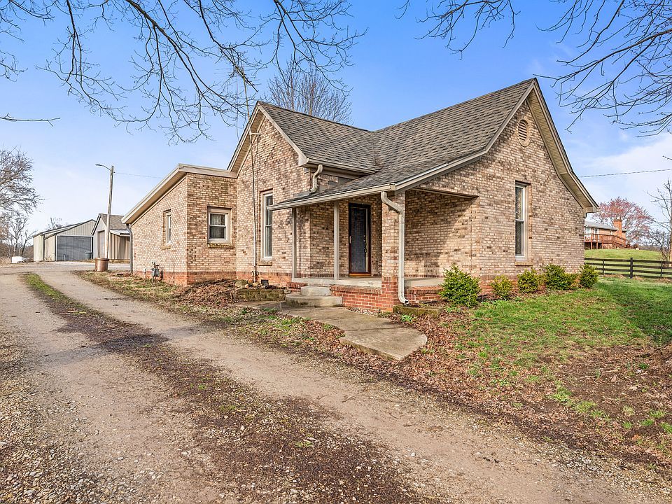 Nestled in a serene rural setting, this all brick, ranch, home offers a blend of country charm, and modern conveniences. Relax and enjoy the tranquil surrounding on the covered front porch. The oversized living room and generously sized bedrooms all feature high ceilings enhancing the sense of space. Both bedrooms have large closets for your storage needs. The kitchen is cozy and functional; including a new dishwasher and appliances. The fresh, light, paint throughout makes it easy to personalize. The property includes a 1 car detached garage, 36x36 barn including lean-to is perfect for animals and a new 40x40 barn with 12 ft ceilings: space for horses, outdoor toys, equipment, the possibilities are endless. The 3+ acres are partially fenced. The property is close to I65 for an easy commute to Indy or all points south.