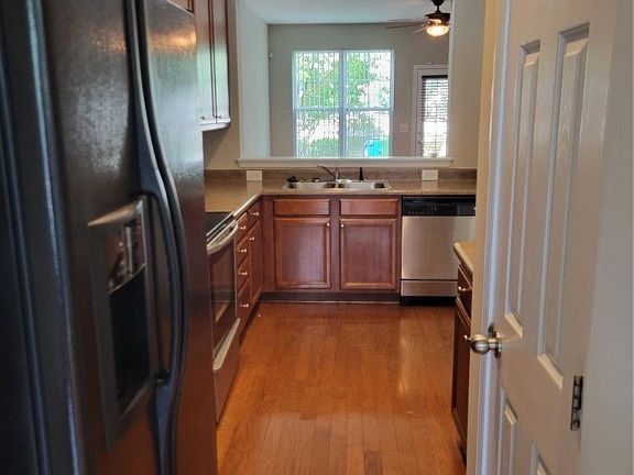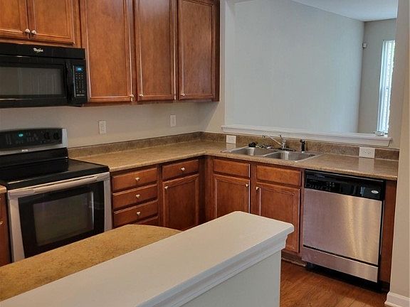 Available Now! Lovely 2 bdrm 2.5 bath townhome in North Raleigh location! Both bedrooms with private bath, wood floors on main level with gas logs in family room! Spacious kitchen with eat in/separate dining space and kitchen bar/side island! Stainless steel and black appliances as well as a W/D included!