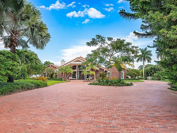 Contemporary Boca Raton Masterpiece with private 82-foot Olympic-like Heated Saltwater Pool and Spa and Impressive Decorative Stone Courtyard with Waterfall Features Throughout. A Tiki-Hut lounge-area and massive backyard complete the property. Welcome to a realm of unparalleled luxury at 6641 Giralda Circle in central Boca, a stunning 5-bedroom, 6.5-bathroom newly renovated and expanded from 2022-2023 on an incredible 1.55 acre lot with the finest craftsmanship and imported finishes throughout. Sleek lines and bespoke European finishes permeate every inch of this captivating single-story, 5,990-square-foot under-air residence with 8,146 total square-feet. Ornate A-frame ceiling details add a unique warm grandeur with custom wood and stone wall coverings that infuse warmth and style into the living spaces. The home was designed for grand entertaining - a bar with its own fridge, sink and ice machine, expansive flow between indoor and outdoor areas, and an open layout that can easily accommodate over 100 guests in comfort and style. A stunning statement, the 8-foot-tall pivot front-entry door, locally crafted from steel and glass to provide a grand yet minimalist entrance enhancing security and peace of mind. An airy foyer with sublime exposed architectural, white-washed wood-beams provides an awe-inspiring living area with volume vaulted ceilings, breathtaking decorative walls with a linear fireplace, additional cabinetry space, full bar complete with chandeliers. The open kitchen and dining area flows onto a private outdoor space overlooking the courtyard, waterfalls, and pool. Elegant and expansive, designed for both relaxation and entertainment. The kitchen was crafted entirely in Porcelain, both the countertops and backsplash are heat-resistant, non-porous, and virtually indestructible. The surfaces are elegant yet highly functional - a combination of sleek Italian design and bulletproof durability. The kitchen has an eat-in peninsula, custom Italian cabinetry, and high-end appliances such as Wolf and Sub-zero. Every surface flows effortlessly, with the design emphasizing minimalism, precision, and harmony between function and form. All kitchen and service-area appliances are top-tier European brands, fully integrated into the cabinetry creating a completely streamlined and sophisticated look to maintain a sleek aesthetic. The adjacent media or club room has gorgeous finished walls, a flat-screen TV and open cabinet shelving for the library touch. The library and all closets throughout the home were custom fabricated in the United States designed and detailed by J.Mark Interiors for both visual impact and long-term performance. Art and decor was personally curated by J. MARK Interiors, sourced from international galleries and bespoke artisans to create a layered, collected feel - refined yet deeply personal. All window treatments are custom-made by J.Mark workrooms, with fabrics flown in from Italy. The designs combine functionality with soft elegance, enhancing the home's architectural lines. The closets and the living and dining millwork were custom-made in Portugal, where artisanal woodworking traditions meet modern precision. Every piece was handcrafted, finished to perfection, and shipped to the U.S. exclusively for this residence. Every fabric and wall covering in the home was imported from Romo Fabrics and Wallpapers in Italy, known for their couture-quality textures and exceptional craftsmanship. Each selection was made to enhance the mood of the space, using rich weaves, silks, and refined patterns that bring warmth and depth to every room. The main office walls are finished in genuine mother-of-pearl, individually hand-applied to catch the light and create a subtle, iridescent glow - a true statement of sophistication. The oversized primary suite features a large encompassing open walk-in closet complete with multiple safes for His and Hers. Impressive Master bedroom facing the courtyard includes a retractable flat-screen television that opens from the ceiling. Full His and Her bathrooms, each one with its own identity and design. Her bathroom features a smart toilet and a tiled ceiling, bringing spa-like refinement into everyday living. The master bathroom is graced with warm and soothing stone accents, and a two-person walk-in shower. All secondary bedrooms have ample closet space and full en-suite bathrooms with Italian cabinetry. Each vanity was custom-made locally, designed to complement the architectural language of the house, with precise attention to proportion and material detailing. Every fixture and surface was selected for both comfort and style. The lighting program combines architectural lighting from Italy with carefully curated decorative pieces. The balance of function and ambience was a key design element - every fixture was chosen for both its beauty and quality of light. Custom solid-core doors, locally made in the United States, selected for soundproofing, proportion, and a clean, substantial feel. Porcelain tile floors throughout for a clean aesthetic, durability, and practicality that require no polishing or maintenance and maintains its finish indefinitely. The tones and layout were selected to create a seamless, timeless foundation throughout the home. The cedar closet constructed entirely of solid cedar, provides natural preservation and a rich, warm scent - both functional and beautifully luxurious. Large laundry room with a washer and dryer, sink-tub for convenience and additional storage space. Home has a complete Vitrea Smart Home system with glass plates, each one customized to the specific light point for effortless access and control. It's an ultra-modern, luxury-grade automation system that manages lighting, HVAC, and shading with precision and elegance; residents have seamless remote control of mood adjustable cove lighting, security alarm system, pool and spa, and audio-visual systems through two in-wall touch-screen pads. Full Cat 6 wiri