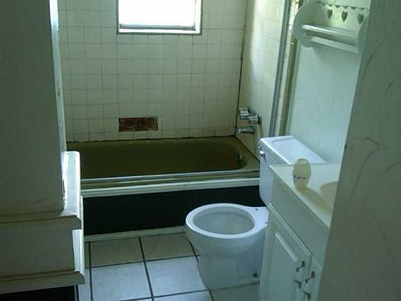 Exterior Features: Exterior: Single story brown home with red trim sits on an average sized lot and has nice curb appeal, doesn’t look to have any problems with exterior, overall in good condition. Siding: Exterior wall is made of brick and looks healthy. Windows: Intact. Soffits and Eaves: Intact. SF: (Lot) Unknown. SF: (Home) 1125. Patio/Porch: Concrete patio in back of house. Roof: Asphalt shingle, seems to be in good condition, no major damage present. Driveway: Concrete. Interior Features: Interior: Looks to be in fair shape overall, floors need some cleaning and living room could use some fresh paint, looks healthy for the most part. Living Room: White walls have some blemishes in them, light carpet is stained and needs cleaning, looks alright. Dining Room: None. Kitchen: Tile floor, beige walls, cabinets & sink are intact, needs minor cleaning but looks in fair condition. Bathroom: (1) Tile floor, white walls, appliances are intact, room looks fine (half) Vinyl floor, toilet & sink, room is in fair shape. Bedroom: All are similar: Crème walls have some scuffs/scrapes, carpet needs cleaning, ceiling fan, overall rooms look decent but need work. Basement: None. Mechanics: Unknown. Garage: None; carport on side of home.