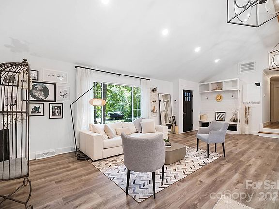 REDUCED $15k! This fully renovated home blends style, comfort, and functionality in every detail. Step inside to an open-concept layout highlighted by vaulted cathedral ceilings, exposed wood beams, designer lighting, and a stunning feature wall that creates architectural interest and warmth. The chef’s kitchen is the centerpiece of the home, showcasing quartz countertops, a large island with built-in microwave, stainless steel Samsung appliances, soft-close cabinetry, and a full herringbone tile backsplash. The dining and living areas flow effortlessly together and are ideal for entertaining or quiet evenings surrounded by natural light. Throughout the home, custom trim, shiplap accents, and sliding barn doors add character, while durable luxury vinyl plank flooring provides beauty and easy maintenance. The primary suite offers a peaceful retreat with a designer barn door, walk-in closet, and spa-inspired bath featuring modern vanity and fixtures, and a beautifully tiled shower surround. Two additional bedrooms or flex spaces complete the thoughtful layout. Additional highlights include a custom mudroom built-in, a spacious den on the lower level with a wood burning fireplace, upgraded lighting and hardware, and fresh paint throughout. Step through the sliding doors onto a spacious deck overlooking a wooded backdrop, perfect for morning coffee or evening gatherings around the fire-pit. You might even spot a few deer. Located close to shops and dining, Reedy Creek Park, UNCC, NODA, Plaza-Midwood and uptown Charlotte. This home offers the perfect blend of convenience, design, and serenity. Every finish has been carefully selected to create a space that feels both fresh and timeless. Welcome home.