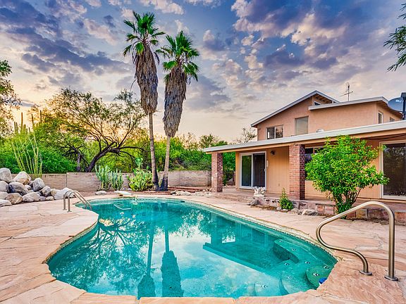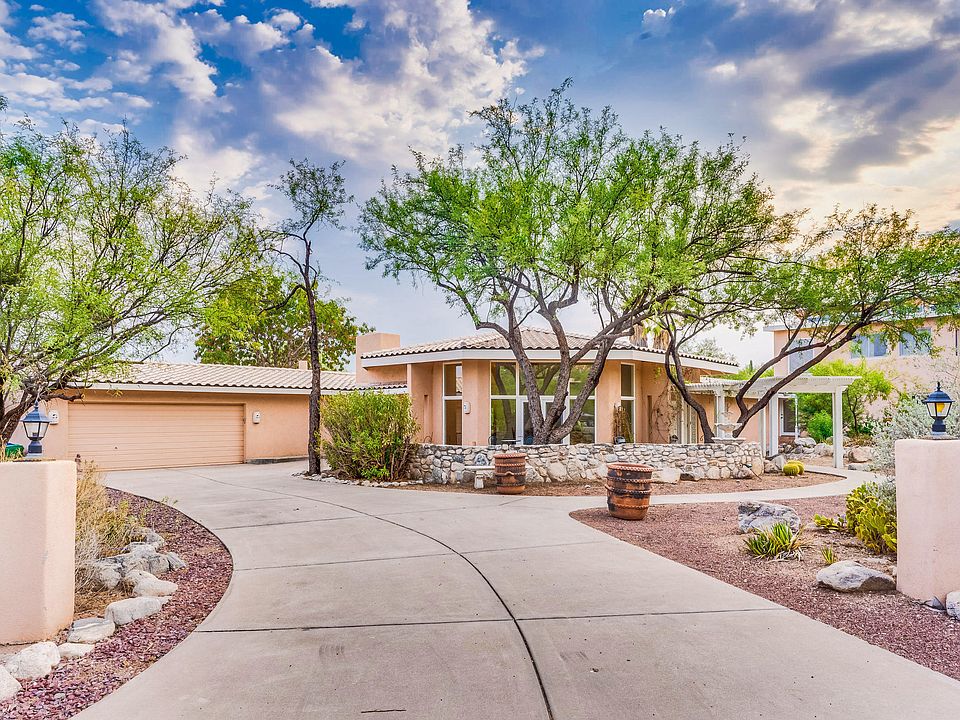**DIAMOND IN THE DESERT** Mediterranean Estate high In the Foothills, adjacent to the Catalina Mountains and Coronado National Forest. This 5 Bedroom, 4 Bath Home reflects magical merging of inspiration and sophistication. Attached Two Story Guesthouse allows for living quarters, flex space, home office, or home schooling while highlighting both Mountain Views and City Night Lights. Main house offers 4BR/3BA on one level. Travertine and Saltillo Floors, Solar Pool, Walls of Windows, Mountain Views, Granite Counters, Two Car Garage, Anderson Windows and Doors, all located on a Private Cul-de-sac. Add your touches to create the ultimate luxurious retreat!