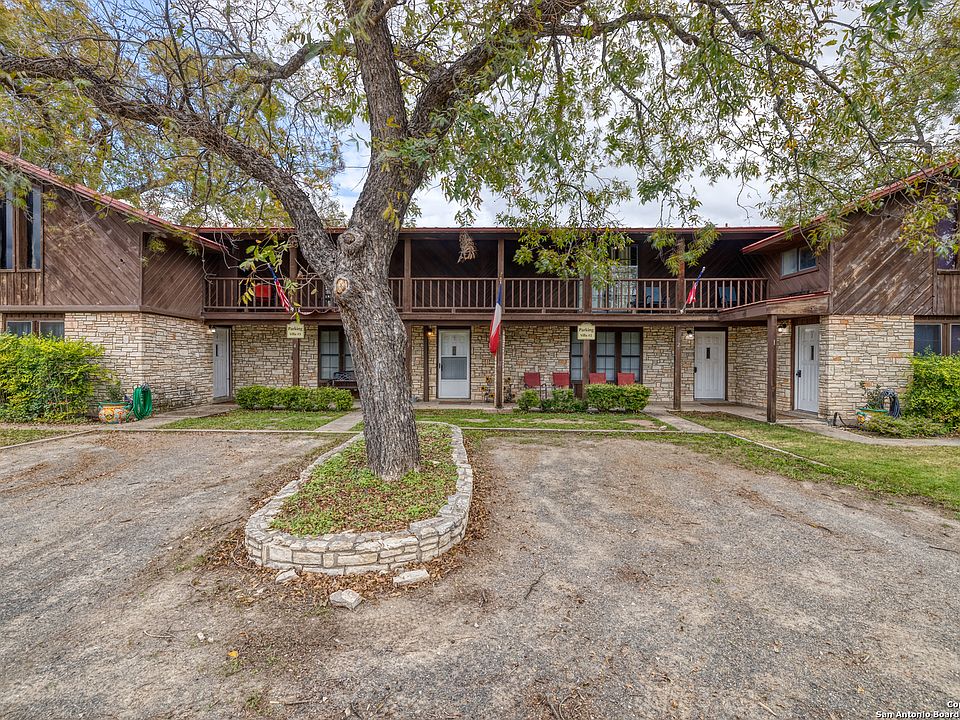 River Run Villas in Rio Frio TX. 4 individual (one building) condos located on a 'large' 1 acre tract within walking distance to the Frio River. Furnished, GREAT rental history and newly remodeled pool make this an investors dream. Behind condos there is the large play area with some huge pecan trees for shade. There are 2 covered carports on each side of the property with 2 covered parking spots, essentially 1 spot/condo. Picnic/BBQ/pool area for each condo to enjoy and a general area for bigger groups to enjoy. These approx 1100 sq ft 2/BR/2BA w/loft condos can make a large family a great vacation place and rent individually as current owner has done.