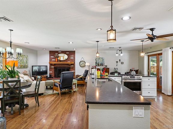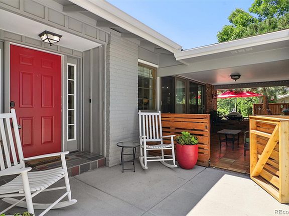 This stunning Mid-Century home with a walkout basement is located in the coveted Ridgewood neighborhood. A beautifully landscaped lot on 19,166 sf is an oasis in this wonderful area of Littleton. This home and the lot have been upgraded with quality and care. The fully remodeled kitchen has a large island that connects the open concept of the main floor. Refinished hardwood flooring throughout the living room, which is highlighted by a brick fireplace and serene views into the mature landscaping of the backyard. Sliding doors off the dining room lead to a spacious covered breezeway that is perfect for outdoor entertaining and relaxing. The primary suite has a simple & eligant ¾ ensuite bath, plus a private deck overlooking the backyard. The lower level of the home is a walk-out basement with a large family room, two additional bedrooms + tons of storage. The front of the house is accessed by the new circular driveway and beautiful mature landscaping. The backyard is a unique and wonderful space for owners that love to be outside and appreciate the wonderful grounds and the remodeled landscaping design. This charming established neighborhood offers easy access to restaurants, parks, shops, entertainment, & is only a 5-minute drive to Littleton Light Rail. Come take a look for yourself!