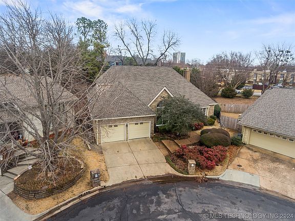 This gem in the Jenks School District was originally built as a custom builders personal home! Lots of upgrades throughout and extremely well cared for by second owner. Freshened up the with new paint and carpet throughout and new tile in the downstairs baths. Nestled near Southern Hills & Saint Francis, this home is all about comfort and convenience. It boasts a flexible layout with a spacious, light and bright, open great room plus a cozy second living space upfront with glass pocket doors that open to the great room…. great when you need separate space or when you want to open them up and use the rooms together. The kitchen is a dream with ample counter space, beautiful custom cabinetry, a large pantry, and a quaint desk area overlooking the back deck with a retractable awning. The elegant dining room with sleek wood floors, natural light and high ceilings is ideal for gatherings or a casual meal. The large primary bedroom is your personal retreat for ultimate relaxation. For a touch of luxury, there's a walk-in tub and a separate shower in the master bath, not to mention a massive walk-in closet. The large office with built-ins is an ideal 2nd Bedroom Down or is perfect for working from home or diving into your hobbies. The 3rd and 4th Bedrooms up are ideal for larger households or can be closed off and used as a private guest suites . There is also tons of storage in oversized closets and attic space. Outside, mature trees create a tranquil, shady haven, enhancing the home’s natural charm. And the perks keep coming—enjoy a community pool, tennis and pickleball courts, and walking trails for your leisure and fitness routines. Plus, the community courtesy patrol adds an extra layer of security. Additional parking available in the cul-de-sac makes it great for entertaining. Don’t miss out on this rare find in midtown Tulsa, where comfort meets convenience in a vibrant community setting.
