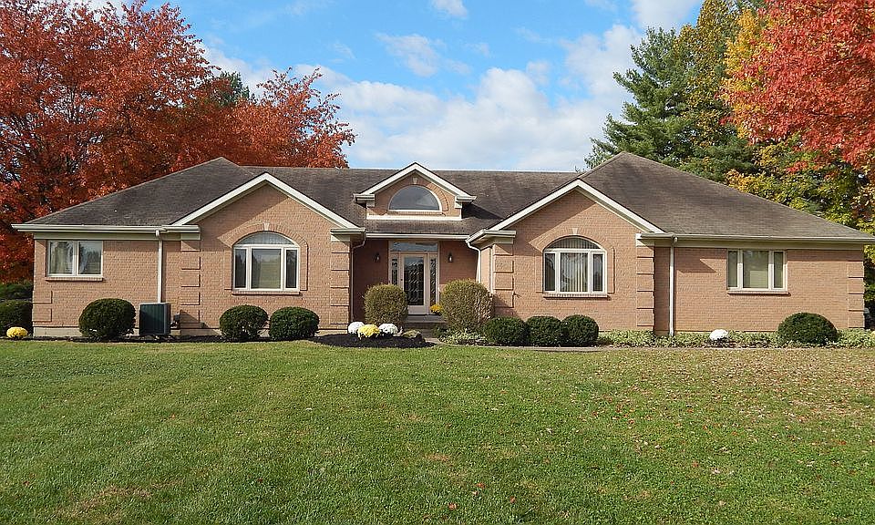 6641 Smith Rd is a hard to find modern ranch style brick home located on a quiet road on an exceptional hard to find lot. Modern ranch style means vaulted ceilings and sky lights. Was just freshened up with new light gray paint tones and new carpets throughout. Exceptional lot means there is a beautiful, manicured golf course in the rear view ( Hickory Woods ) and a beautiful manicured horse farm estate out the front view ( The Klosterman Estate ). Lots of elbow room on the sides between two great and mature quiet neighbors.