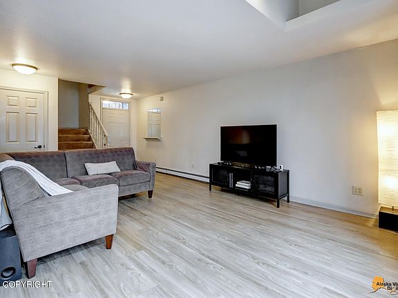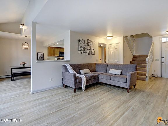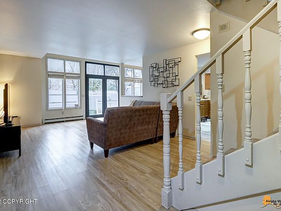 Lovely Cimarron townhome featuring 3 bedrooms, 2.5 baths & 2 car garage. Open floor plan with tall ceilings, new laminate flooring, lots of windows & double glass doors to back deck. Kitchen features SS appliances, gas range & lots of cabinets . 1st floor 1/2 bath for guests. Upstairs are 3 spaciousbedrooms, 2 baths & loft area. Completely vaulted with ample Master Suite, bedroom 2 features play or storage area & built in cabinets. Back deck & fenced yard. Beautifully landscaped association with low dues that include snow removal, driveway, exterior maintenance & onsite RV parking area. Direct access to Baxter Bog Trail plus easy commute to hospitals, universities, JBER & shopping.