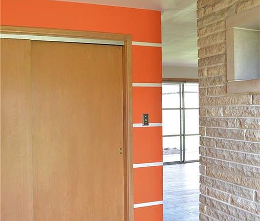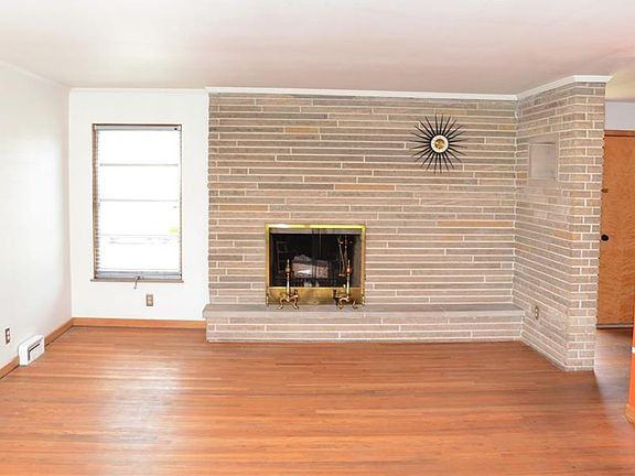 Warren Park Midcentury Modern! Delightful 2 bed 1 bath home with open floorplan and cool mod touches. Vintage metal kitchen cabinets, stone fireplace wall, hardwood floors, and vintage bath with matching 50's features. Check out that basement tile and bonus basement fireplace! So much storage with large entry closet, kitchen pantry, linen closet, and sizeable bedroom closets. Covered back patio and spacious yard. Fantastic midcentury roofline.