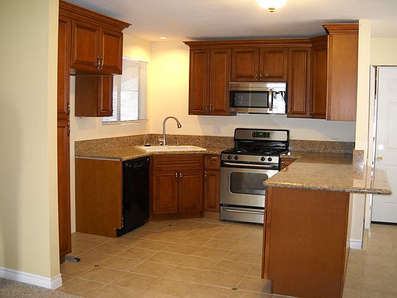 Corner lot, sparkling pool home, 3 bedrooms, 2 bath, beautiful remodeled kitchen, granite counter tops, central AC, living room leads to backyard with sparkling swimming pool, putting green & patio great for entertaining! Large Master Suite with private bathroom, large sunken roman tub, dual sinks, separate shower, sliding glass doors leads to back yard. 2 car attached garage with washer dryer hook-ups. Refrigerator in garage included but not warranted. Gardener & pool service included. Owner will have carpets cleaned every 6 months at his expense. 2 Year Lease Required. No pets are allowed. Applications completed, Current pay stubs, copies of drivers license & current bank statements. Please call to find out more info.