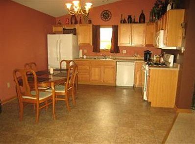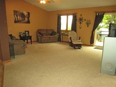 Wonderful home is loaded w/upgraded features! Better than new! Open concept greatroom and kitchen has cathedral ceilings, custom paint treatment and sliding doors to the large deck. Kitchen has maple cabinets, all appliances included and lots of space! Master bedroom has a walk-in closet and private full bath. The beautifully finished basement has room for everything plus a huge family room, 4th bedroom and bath. Solid wood raised panel doors throughout, water softner plus a water purification system. Lovely lot that backs to wooded area, low low taxes and so much more! Please see the additional photos.