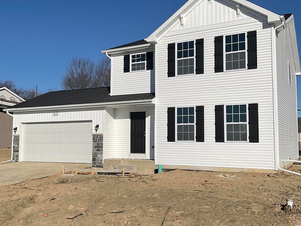 MOVE IN READY! New construction home in Farmington Meadows, located in Tri-Creek School Corp. RESNET energy smart construction will save owner over $1000 yearly plus home has 10-year structural warranty! This is the only new construction in Lowell with a spacious, ready to finish basement. Over 1800 sqft of living space on 2 levels blends function with style. The main floor has vinyl flooring throughout and features a large great room, spacious kitchen with white cabinets, quartz counters accented by subway tile backsplash and breakfast bar with pendant lighting above. Appliances include stainless steel range, micro hood, dishwasher & refrigerator. The eat-in kitchen has a dedicated dining nook with slider doors leading to a 10x10 patio. The first floor is also equipped with a mudroom, laundry room with washer & dryer included, plus a stylish powder bath. Upper level boasts a primary suite complete with WIC and private bath, 3 spacious bedrooms and an additional full bath. Home also has attached 2 car garage with openers and keypad entry, covered front porch entry.