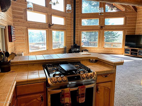 - Fireplace features: wood stove