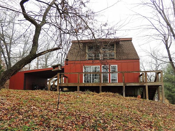 Unique home with lots of character! Open floor plan, updated kitchen, spiral staircase & updated bath. Beautiful setting w/ covered deck, perfect to enjoy the view. Tankless water heater, updated central heat/AC & wood stove in basement. Unfinished basement & storage building.