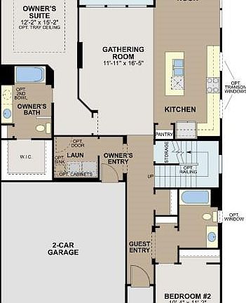 This paired home showcases 3 bedrooms, 3 bathrooms, and a 2-car garage. Once you step inside, you have the secondary bedroom that shares a small hallway with a full bath. Continuing down the hallway, you pass the laundry room and enter the common area which consists of the kitchen, dining nook, and the gathering room with a fireplace. A doorway off the dining nook leads you to the extended veranda. The tucked-away owner’s suite comes with a beautiful tray ceiling, a private door to the laundry room, a sizable walk-in closet, and a deluxe owner’s bath. Upstairs you will find a versatile bonus room, a bedroom, and a full bath.