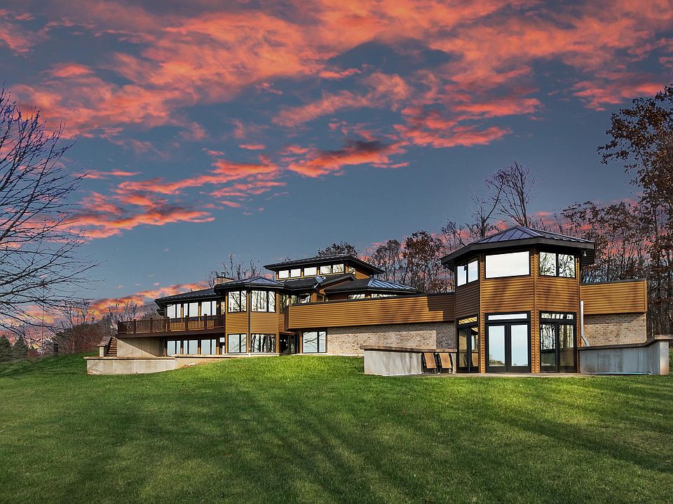 Experience luxury living in this exquisite home on over 22 acres. Dive into relaxation with your indoor pool and hot tub or unwind in the 3 Seasons room. Revel in breathtaking views through expansive windows, bathing the main level in natural light. The primary suite boasts a jetted tub, a spacious walk-in closet, and a cozy gas fireplace. The main level features a generous living room, a formal dining area, and a wood-burning fireplace. An upper-level loft makes a great office or additional living space. The lower Level features 2 bedrooms with walk-in closets, gas fireplace & bar area. The heated attached garage adds convenience, while the detached garage with a finished party room is perfect for entertaining. Your dream home awaits!