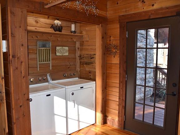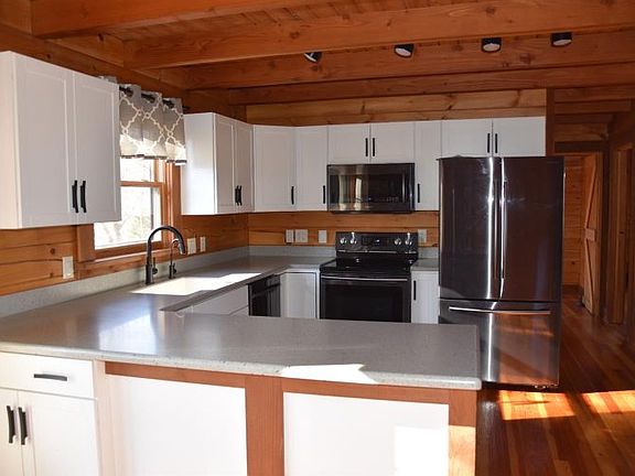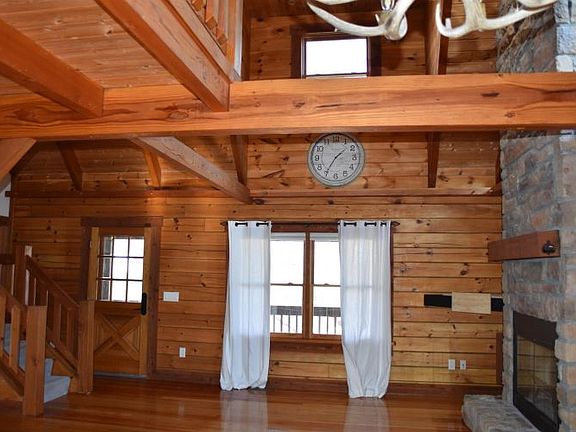 Ever thought about living in a log cabin on 5+ acres of land? Here is your opportunity! Appliances are almost new along with the solid surface countertops. Exposed wood beams in the second floor loft add to the rustic charm.