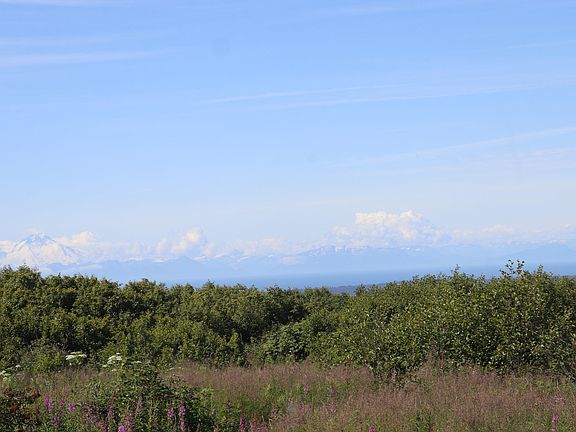 Peaceful Private and Tranquil! Only 12 miles from Homer! Sweeping Views of Cook Inlet, Illiamna, Redoubt and a gorgeous open meadow. Freshly painted, clean and ready to move into! Open floor plan w/ family room too and incredible Decks! Wood stove, jacuzzi tub, ceramic tile and plumbed for a bar in the family room too.