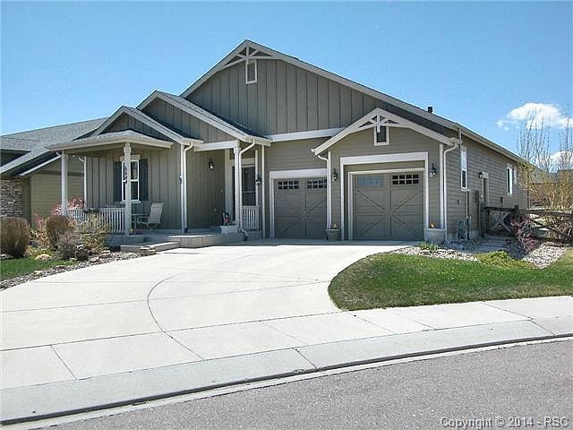 Stunning Pikes Peak view and culdesac location are just the beginning of features. This all main level living 4 bedroom plus office rancher is move in ready. Office has closet niche to make a 3rd bedroom on the main if needed. Large gourmet kitchen has tons of storage w 42 inch maple cabinets. All kitchen appliances included and the double ovens are a plus.Huge game room ready for football offers a 11x10 wet bar with refrigerator and dishwasher. Master has 5 piece bath and large walk in closet. Shows like a model!