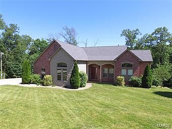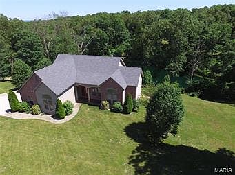 A picturesque setting, overlooking a private pond, is home to this striking Festus ranch.... The home features 3 bedrooms, 3 baths and over 3,200 square feet of comfortable living space. Special amenities include a brick and stone front elevation, an open and split bedroom floor plan, 9' and vaulted ceilings, hardwood and tile flooring, 2 fireplaces, a wet bar, 2" blinds and 2 panel doors with brush nickel hardware and granite counter tops. Set on a scenic 6 acres lot, backing to a pond and woods, with an inviting deck....This home offers the best of country living with shopping, dining and access to major commuter routes just a short drive away. This incredible home is sure to IMPRESS....So make your appointment TODAY!