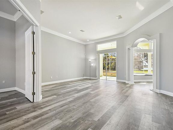 Newly renovatedElegant double glass doorsChef-inspired kitchenExpansive family roomCustom window insertsPlantation blindsWalk-in closets