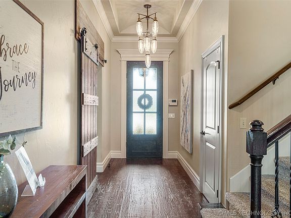 Beautiful Executives signature style home with tons of upgrades already done! 4 bedrooms + office, Gameroom and 3 car garage. First level offers 3 bedrooms, 2.5 baths and office. Upstairs level with 1 bed, 1 full bath and Gameroom. Hand-scraped wood floors throughout most of the first level including primary bedroom and office. Travertine tile in kitchen and all bathrooms & showers. Open floor plan with living room beams and kitchen completed with large island, custom rope trim cabinetry, exotic granite and pot filler. Vaulted A-frame screened in patio and fully fenced backyard. Garage upgraded with epoxy flooring! Gameroom is wired for theater setup. This home is move in ready and has lots to offer!