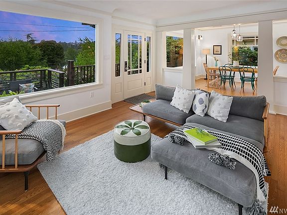Quintessential Green Lake Tudor w/ artfully modernized interior & spectacular front row views. This renovated 4 bed+den features entry w/ expansive views of the lake & chef's kitchen w/ oversized island. Dining, main level bed & office round out a versatile main floor. Upper features master suite & 2 addt'l view bedrooms w/a shared bath. Lower offers plenty of options w/ a rec. room, home gym, or art studio. Back patio ideal for al fresco dining. The amenities of Green Lake at your fingertips.