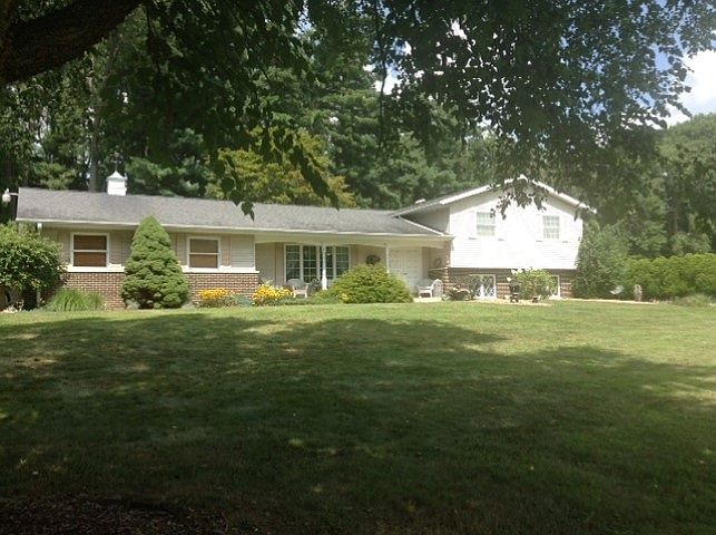WELCOME to this tranquil 14+ acre Country setting! This one owner home features an updated kitchen, spacious bedrooms and one has a balcony overlooking just gorgeous landscaping. The lower level has a woodburning fireplace AND Stove with 2 large family rooms.THEN step out back onto your choice of 3 sliding doors into a Paradise of flowers, 2 wood decks PLUS an Inground POOL! There are walking trails into the woods. For more storage there is a 2 story Workshop 20x48. More extra's include a Back-up generator A den/office, sunken living room.