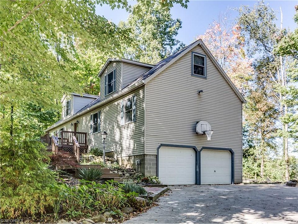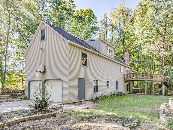 Enjoy country living in your own 8-acre woods, yet be within minutes of hospital, schools, town & highway. This fabulous 5-bedroom home has modern granite kitchen, recently carpeted living room with wood burner & sliders to the fabulous multi-tiered back deck. First floor laundry is handy to 3 bedrooms. Formal dining room has hardwood flooring. Upstairs, two huge bedrooms are supported with a full bath including a free-standing shower plus garden tub. The finished lower level has carpeted rec room with another wood-burner, an office, full bath, sliders to back patio & access to the 2-car garage. Outbuilding with 2-story area, approximately 36x56' includes 12x12' garage door, concrete floor, separate paint room ( could have various uses), and a 50 year metal roof! With 200 amp service, this insulated building has 2 furnaces plus a wood burner, ample for any mechanic, wood worker, or welder. Upstairs, a 12x56' office area. Plus there is a 12x56' covered overhang storage area in the back! You'll have to see this place to believe it!