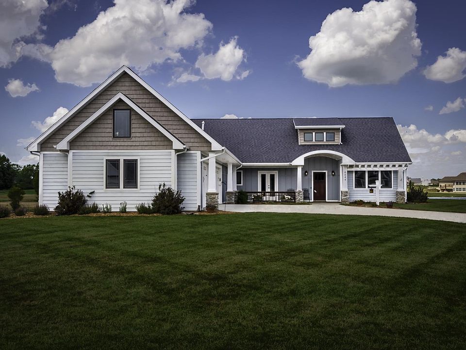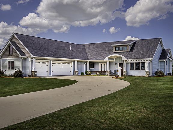 Model home look and quality! This custom craftsman home Built by Schlattery Builders is young enough to have the "New Home" feel, but well enough established from landscaping to the window treatments and the Stainless Steel appliances that you have a "Finished Comfortable Homey" feel. The home features Cathedral ceiling with open rafters and beams in the kitchen and living room, coffered ceiling in the Den/Dining Room with high wainscoting that also extends down the foyer and hallways are some of the extra quality features added to this home. You'll appreciate the two fireplaces, a large country sink in the kitchen with a wine cooler, a separate laundry room with sink, a butlers pantry with a separate entry, plus a walk-in pantry. More extra touches include transom windows over the doors, Pottery Barn fans and light fixtures, pocket doors, double trey ceiling in the master bedroom, and so much more! All of this is waiting for you, and located on just over an acre lot situated on the pond. An extended patio with a fire pit is a great place to enjoy the view. During inclement weather, there is a 4 season room offering the same views. The home is equipped with a Nest Ring Doorbell and Nest Thermostat, and both stay with the home. The refrigerator can stay with the home, if needed, and the water softener (Kinetico brand, 3 years old) also stays. We kindly request at least a 2 hour notice for showings. You cannot rebuild this home with the same quality features at this price, especially on this lot.