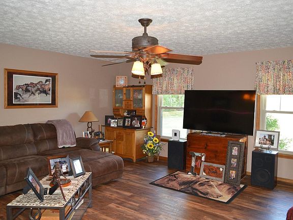 Hurry! Horse properties like this one don't come on the market very often! This three bedroom two bath all brick ranch style home is a must see! Upon entering the covered front porch you will see how this one owner home has been very well cared for. Nice sized living room that opens to the eat in kitchen. Down the hall you have the primary suite with attached full bath. The other two bedrooms (one currently being used as a hobby/sewing room) share the other full bath across the hall. Home features a newer furnace and AC and includes the washer and dryer as well. The outdoor space is absolutely amazing! Seven and a half acres of mostly pasture but a little is wooded. The barn features parking for an RV/trailer and plenty of storage space for equipment. The three stalls are generous sized with a wide concrete aisle and a wash rack at the end. Two pastures are located right off the barn with nice newer fencing. There is a grass field beyond the pasture currently being used as a hay field. The views and peaceful scenery this property offer are unmatched! Bring your livestock and move right in!