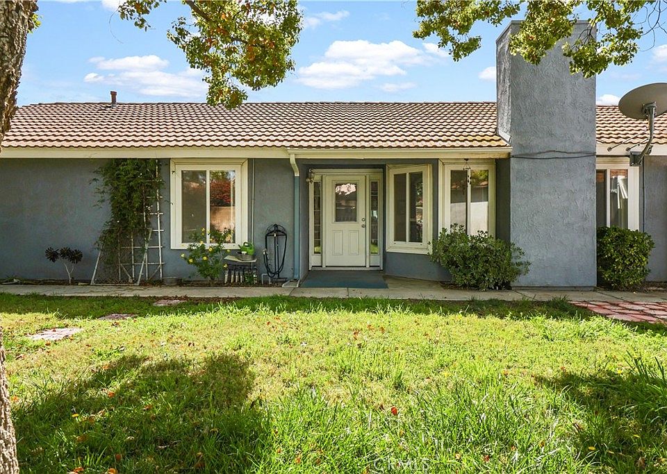 Come and visit this charming 3 bedroom, 2 bathroom home in Jurupa Valley situated on a generously sized cul-de-sac lot, a rare find in this area. You will appreciate the ultimate privacy provided by the gated front yard. As you step inside through the upgraded front door, you will be greeted by a cozy family room with a red brick fireplace and a formal dining room boasting abundant natural light from the skylights. The kitchen, conveniently located off the dining room, features a breakfast bar counter, plenty of cabinets, counter space, and a double door pantry. The garage, accessible from the kitchen, houses the laundry room and can easily fit two cars. The front bedroom with a full closet is currently being used as an office, while the second bedroom is located across the hall from the owner's suite. The house features upgraded windows and tile flooring in the kitchen, dining room, and bathrooms. Finally, you can unwind in your own private backyard oasis, which includes a slab area perfect for family BBQ's, ample space for gardening, bird watching, flowers/shrubs and room for kids to play. The Meadow above the backyard includes many drought tolerant California native plants and trees. Newer windows, exterior doors, HVAC and HVAC ducting. Don't miss out on this rare gem and schedule a viewing today.