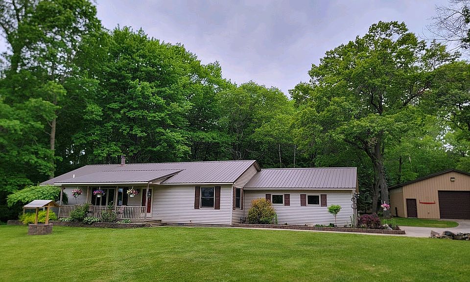 Stunning ranch home that offers 5 wooded acres, multiple out buildings, abundance of wildlife and not to mention located a short bike ride to a sugar sand beach! Many updates have been made to this 3 bedroom 2 bath home that include updated roofs, granite counter tops, 24'x24' (previous garage) remodeled into a 3rd bedroom or large family room that offers hardwood floors, cultured stone gas fireplaces and central air. Walking the grounds you will notice this paradise sits well off the road and the 5 acre lot backs up to state land. If your looking for storage this home is for you! Offering a 32'x32' pole barn with backside covered pavilion and a additional 32'x32' garage as well! Part of the backyard has been fully fenced in. Great for pets and children. I could go on and on but it's best to come see for yourself! Don't hesitate in this market because it won't last long!